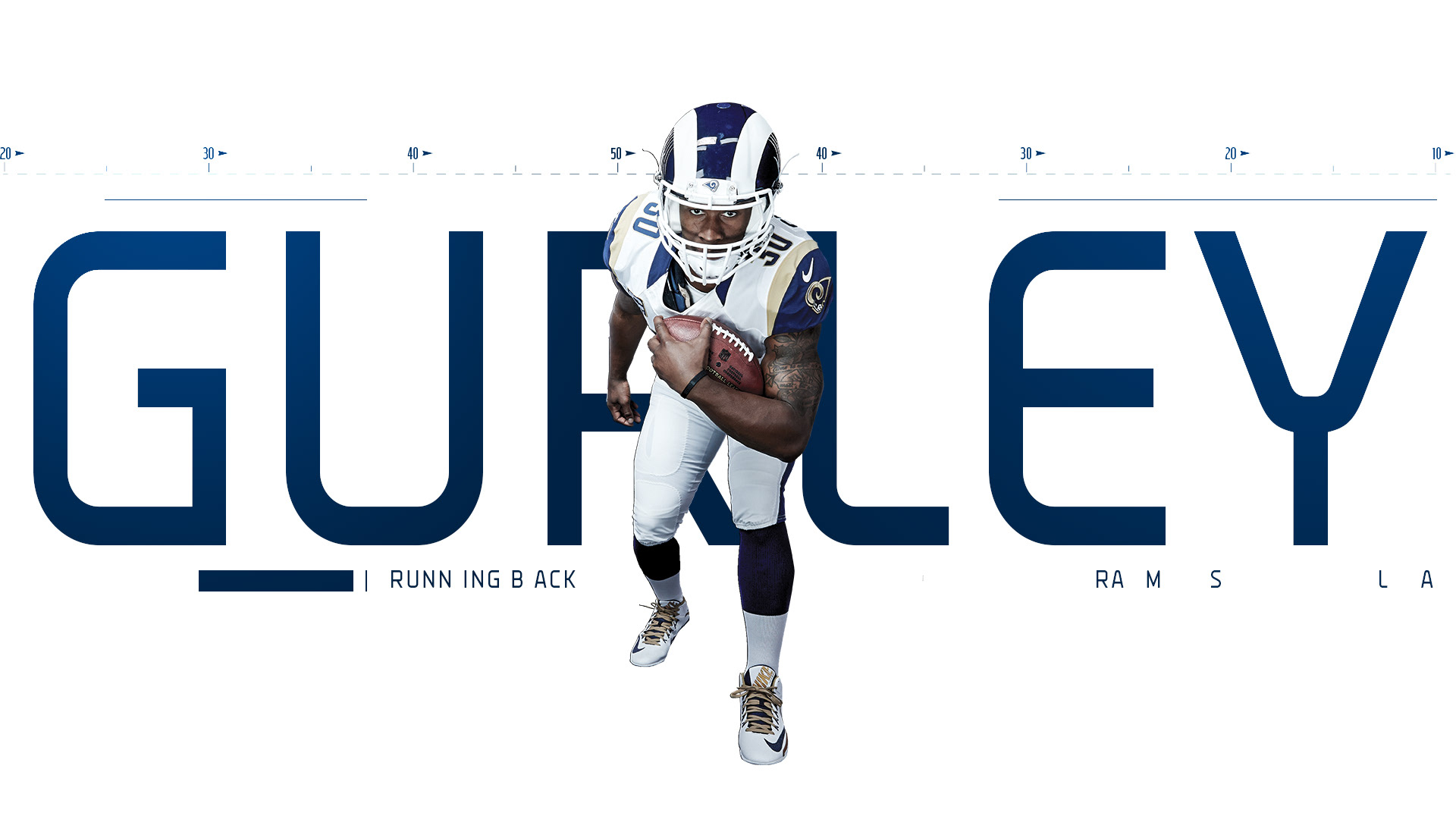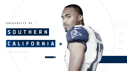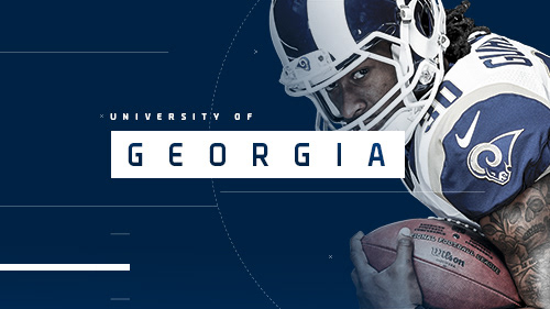 2017 Gameday prompts and player headshots for the Los Angeles Rams at the LA Memorial Coliseum.